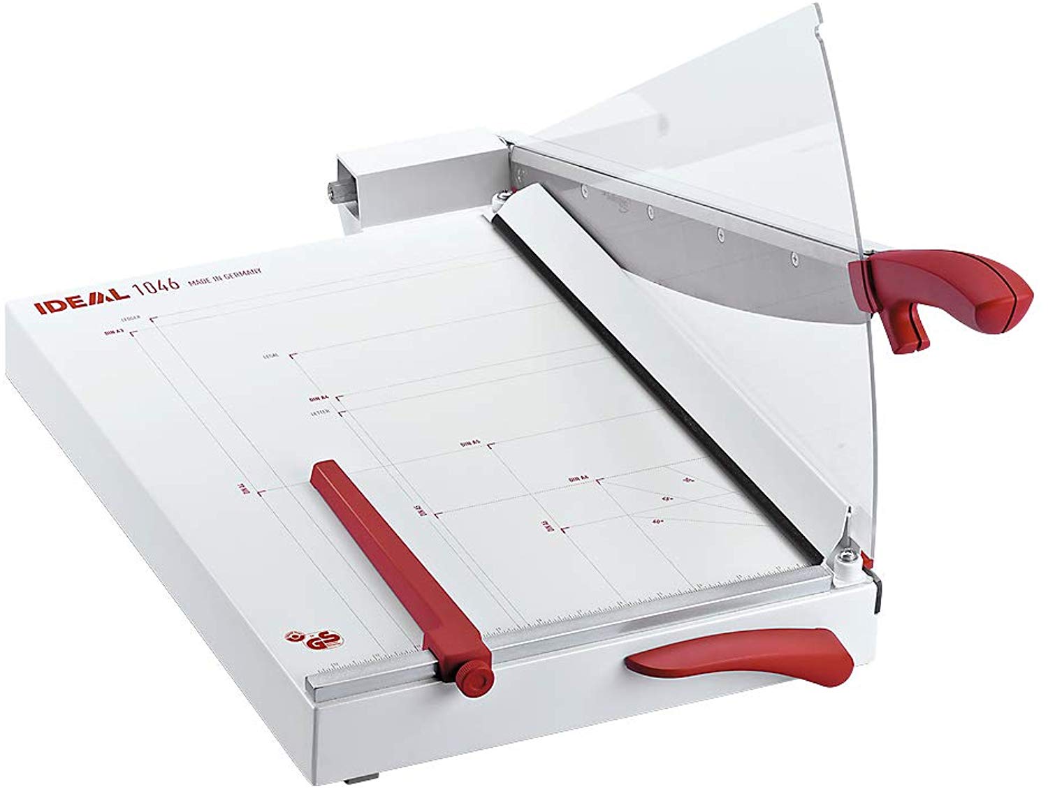 Резак Ideal 1046 с устройствм автоматического прижима стопы обеспечивает комфортабельный рез. Лезвие выполнено из высоколегированой немецкой стали «Solingen steel» с возможностью затачивания. Точные измерительные шкалы с указанием стандартных форматов бумаги, индикатор линии реза на прижимной планке, а также прозрачная зона фиксатора позволяют делать точный рез.